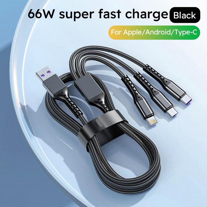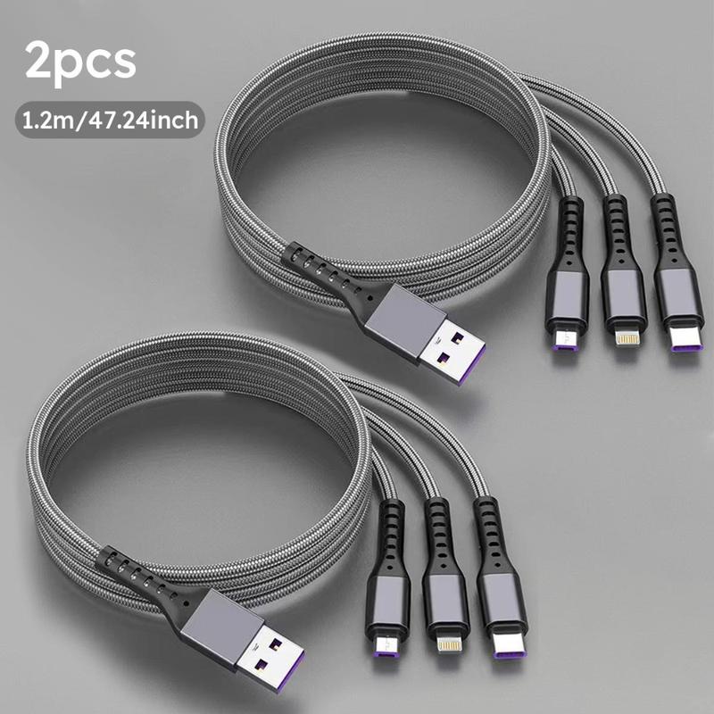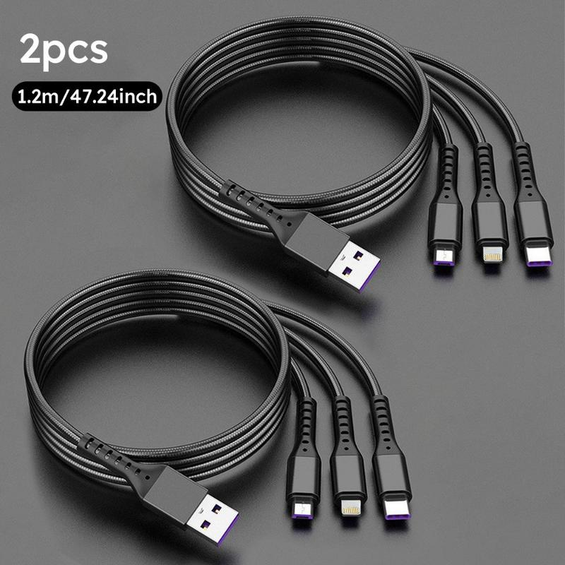 Each 1.2m/47.24" cable features a 50% thickened galvanized copper core for stable 5A current delivery, ensuring ultra-fast charging for iPhones, Android devices, and Type-C gadgets. The upgraded 6-chip intelligent system auto-detects your device to enable optimal fast/flash charging, while the 3-in-1 design lets you charge 3 devices simultaneously (full charge in 120 minutes!).